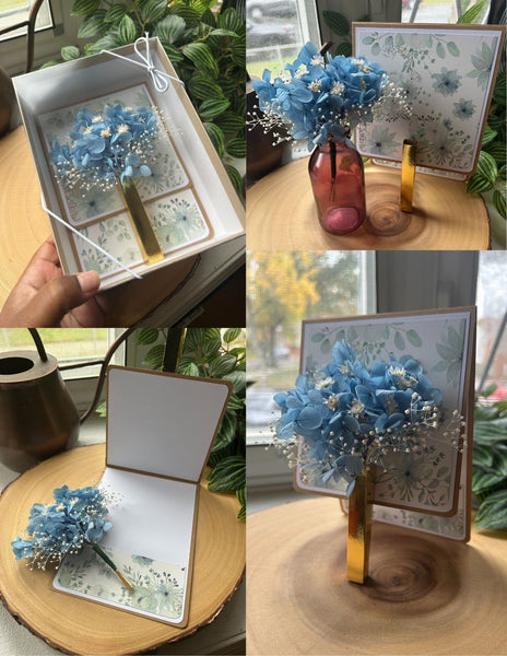 All cards come with a keepsake box. Bouquets are perfect for your decor. Various colors are available.