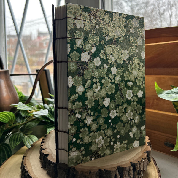 Document your life in a beautiful handmade exposed stitch journal. Journal cover is made from Japanese chiyogami paper. Number of pages 160. Paper thickness 120 gsm. Handmade in DC.