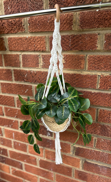 Hang your growing plant in one of our handmade recycled, low-impact dyed cotton plant hangers. Various sizes available. Shown: 30 inch plant hanger. Handmade in DC.